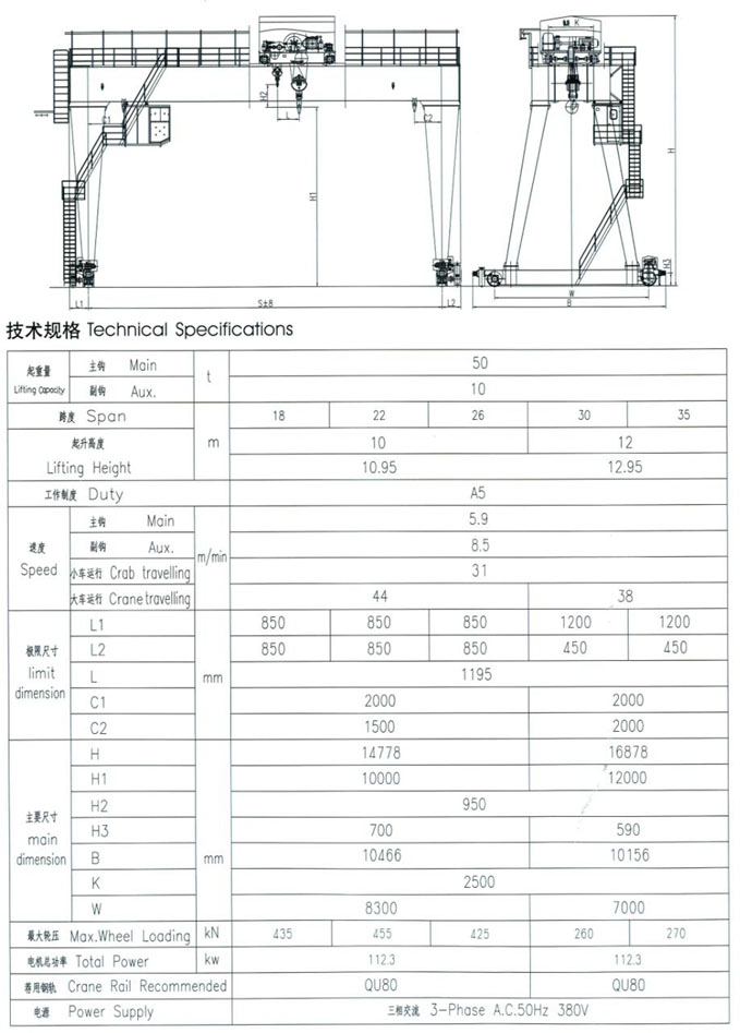 產(chǎn)品說明: 圖示為我公司為陽泉煤業(yè)集團(tuán)制造的MG35/10T起重機(jī)
